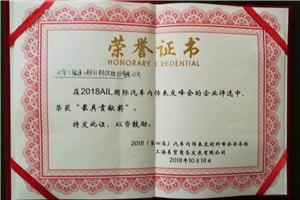 熱烈祝賀天守股份榮獲“2018AIL國際汽車表皮峰會最具貢獻獎”
